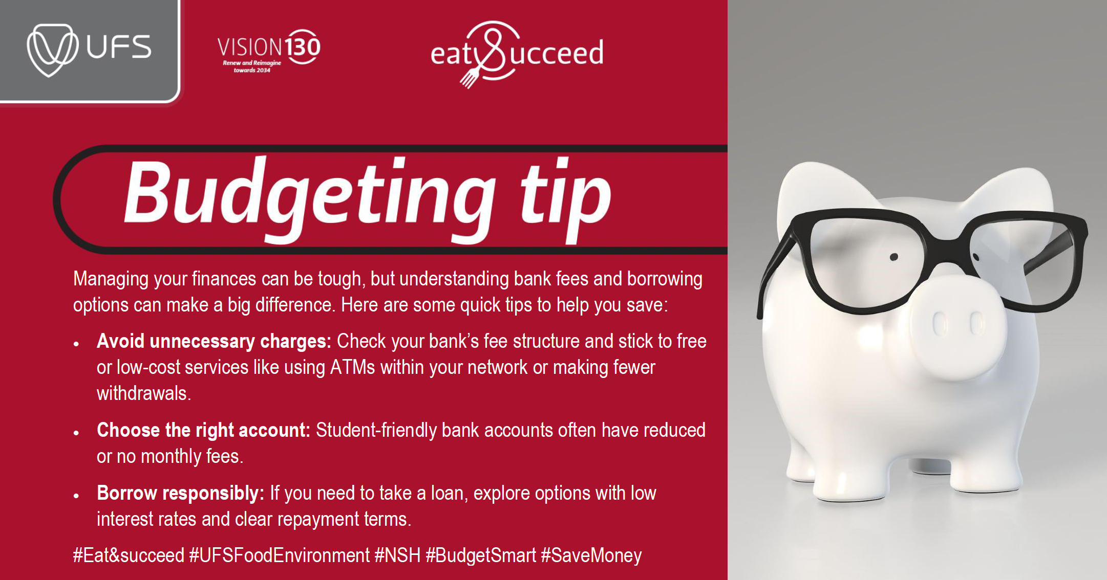 #Eat&succeed #UFSFoodEnvironment #NSH #BudgetSmart #SaveMoney #StudentFinance #BankingTips
