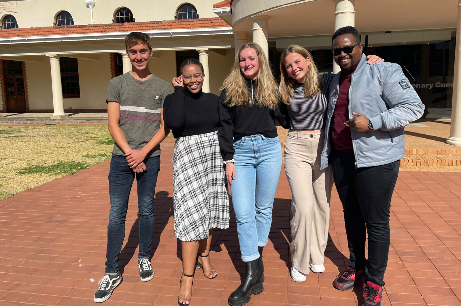 Experiencing the UFS in person for the first time are from the left: Sandor Potjer (VU Amsterdam), Bulelwa Moikwatlhai (UFS OIA), Ricarda Kochems (Bremen University, Germany), Froukje Pronk (VU Amsterdam) and Matome Mokoena (UFS OIA)