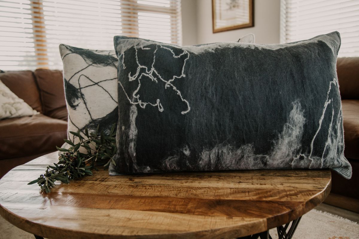 The team achieved third place with their cushion, featuring a front made entirely of merino wool felt and a back crafted from upholstery fabric. “Each cushion contains a 100% duck feather inner, and their uniqueness lies in the hand-dyed wool and hand-placed designs on each felt piece,” explains Vorster.