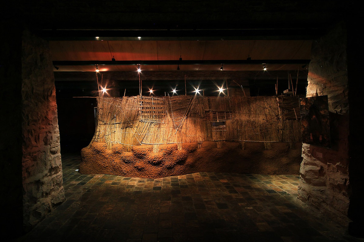 The project brought together, among others, interdisciplinary artist Sonya Rademeyer, Prof Keith Armstrong – Visiting Professor in the Centre for Development Support – and Dr Anita Venter from the University of the Free State (UFS). At its centre stood a cultural wall, or meraka – a gathering place – constructed using post-natural and indigenous methodologies, including clay and animal dung. In a later phase, live snails were introduced into the installation space, feeding on high-end Fabriano art paper – a deliberate unsettling of hierarchies between material, method, and meaning.